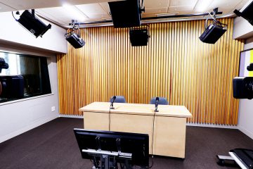 2023年度メディアスタジオ実習Ⅱ 1月26日、「メディアスタジオ実習Ⅱ」の制作実習の番組収録が行われました。テレビ制作現場の最...